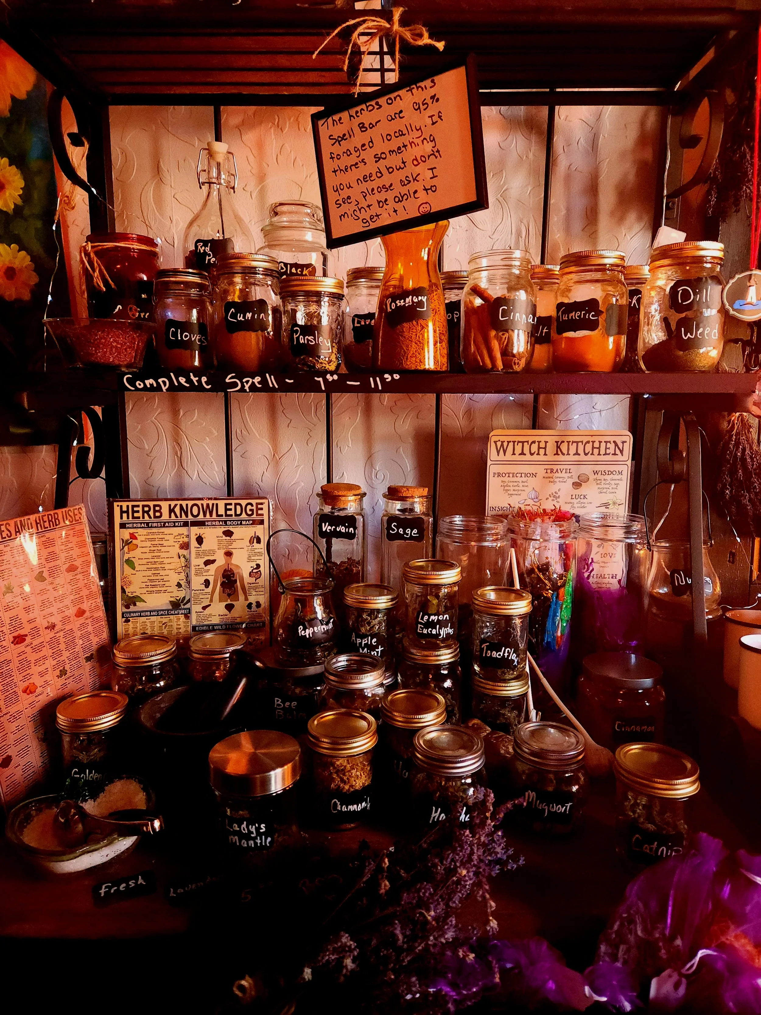 Browse through our spell book and pick from our stores of ingredients to put together your own spell. Place all the ingredients into a pouch, take a candle and an incantation scroll. Completely hands on and customizable.